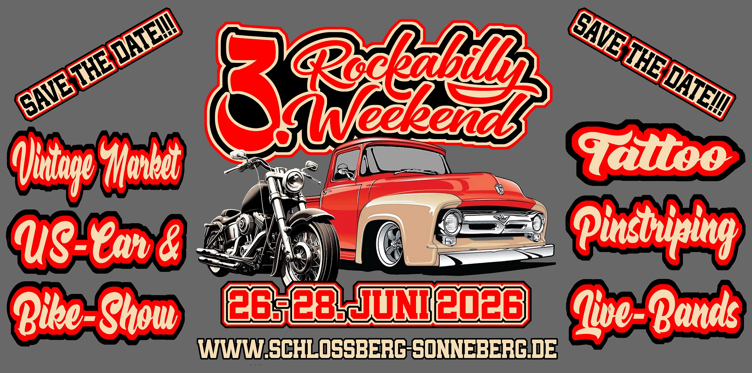 Willkommen zu 3 Tage Rockabilly mit Vintage Market | US-Car & Bike-Show | Pinstriping | Tattoos | Live Music