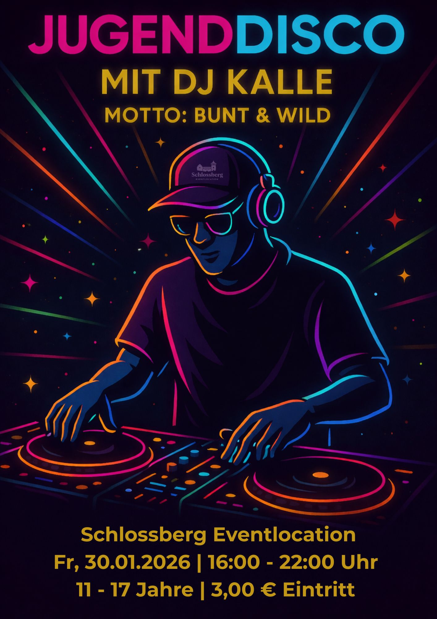 #Jugenddisco #BuntUndWild #DJKalle #SchlossbergSonneberg #NeonParty #DiscoNight #TeensOnly #Partytime